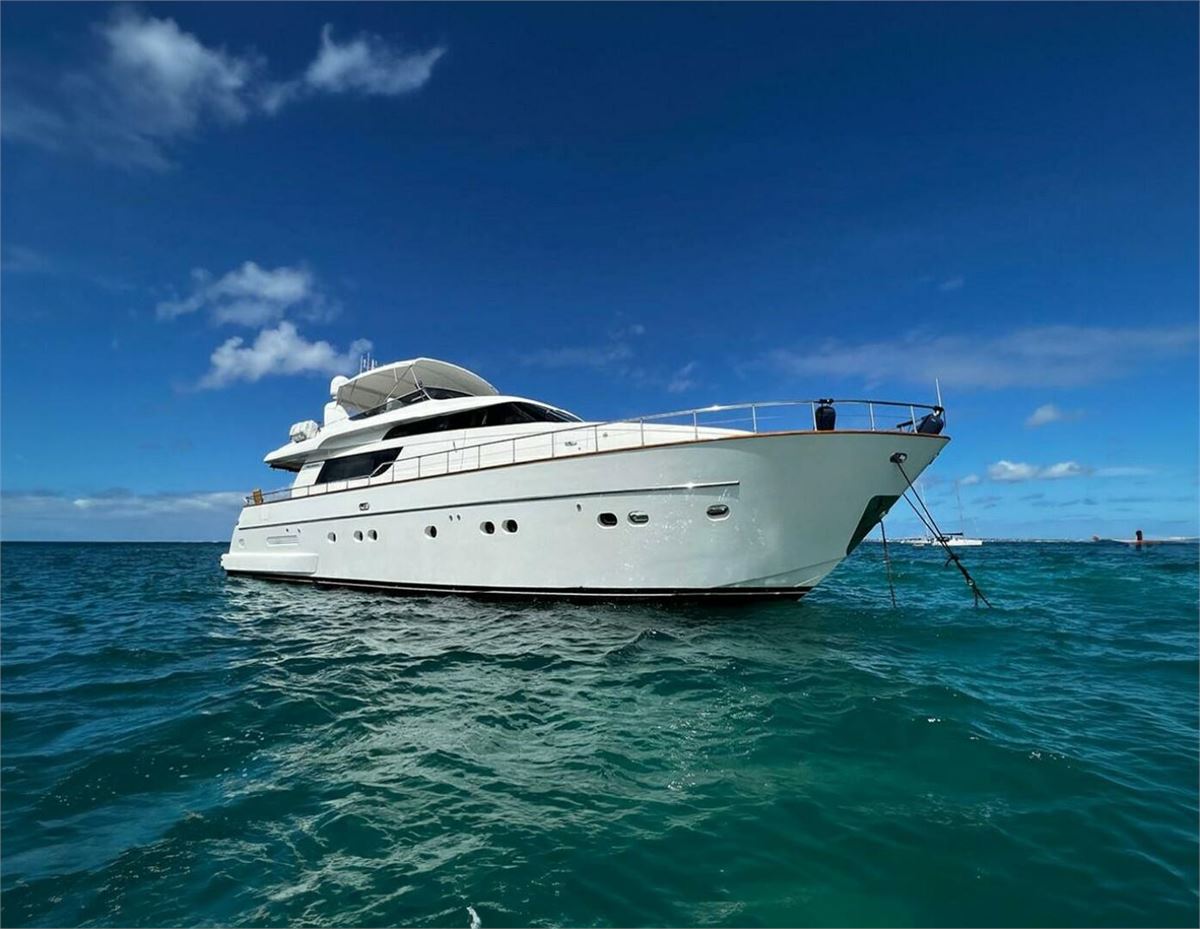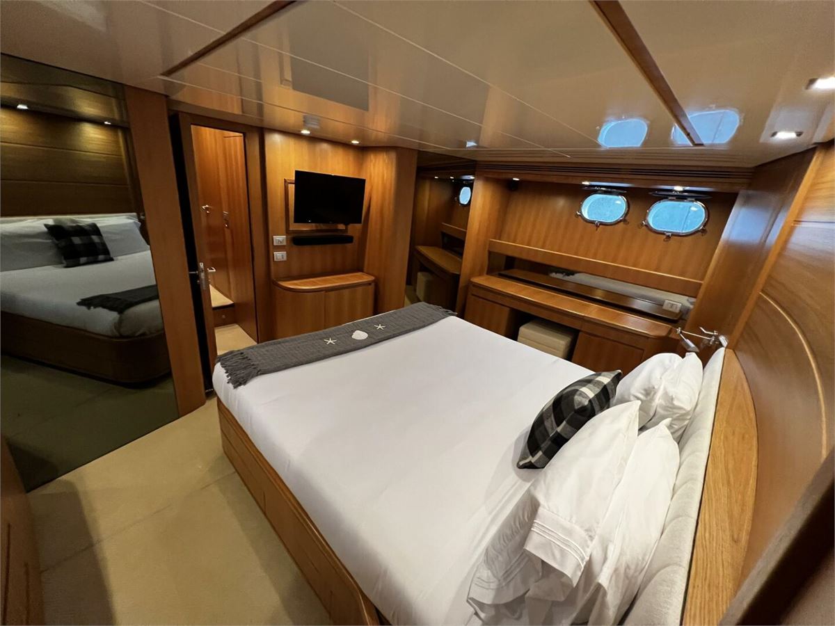M/Y KOKO, delivered in 2006 by Sanlorenzo, accommodates 8 guests in 4 staterooms with 2 crew. Powered by twin MTU diesel engines. Exterior spaces include alfresco dining on the sundeck and lounge area aft.